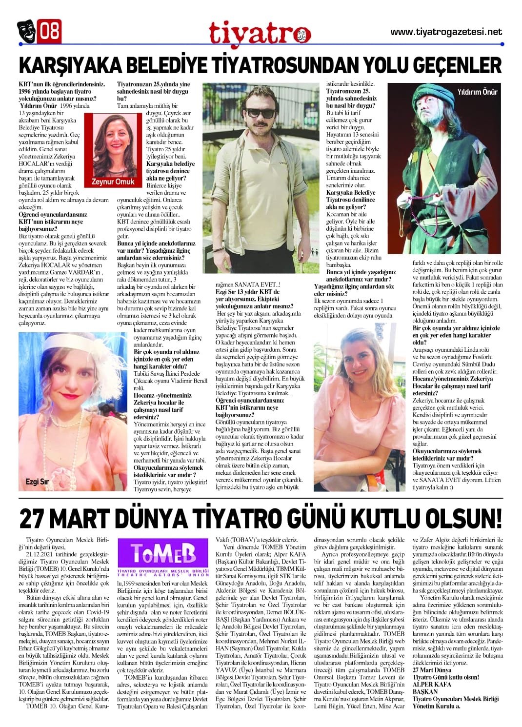 Ülkemiz ve uluslararası alanda tiyatro sanatını icra eden sanatçılarımızın yanında tüm sorunlara…
